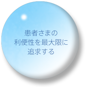 当院では、待ち時間の短縮、病院との連携、他院への紹介などを活用し、患者さまの利便性を最大限に追求します。